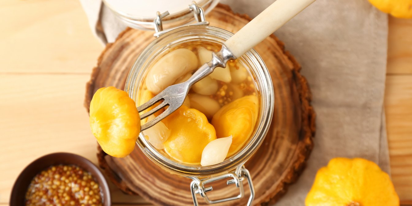 Консервовані жовті патисони виходять не лише хрусткими, а й пікантними — справжня радість для любителів консервації!