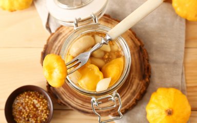 Консервовані жовті патисони з печерицями — закуска, яку захочуть скуштувати всі