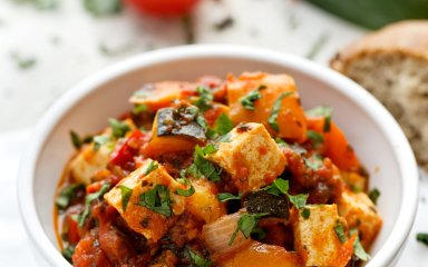 Це овочеве рагу з тофу настільки смачне, що його з’їдять навіть ті, хто не є вегетаріанцями! Смак дивовижний, консистенція цікава, поживна цінність відмінна. Що ще треба? Хіба що скибочка хрусткого хліба.