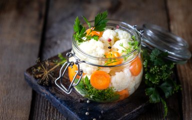 Радимо також рецепт маринованої цвітної капусти на зиму, в якому нічого зайвого. Потрібні морква, цибуля та трішки спецій.
