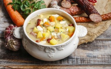 У цьому супі кабачок — головний інгредієнт, але суміш овочів, сирокопчена ковбаса і плавлені сирки — ось що дійсно робить суп таким смачним. Подавайте його з хрумким хлібом!