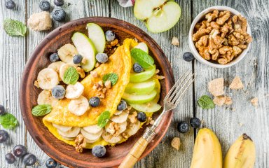 Десертний омлет з яблуками та бананами — це проста і швидка ідея на сніданок, тому його можна готувати у будні дні та не боятися, що запізнишся на роботу.