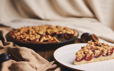 Сливовий пісочний пиріг з крамблом — задоволення з першого шматочка