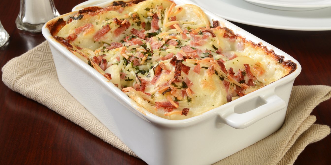 Запечена молода картопля із шинкою та овочами — це одна з багатьох ідей простих вечерь. Ви також можете приготувати пасту із шинкою і броколі, картоплю з лисичками чи запіканку з рибою.
