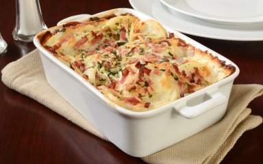 Молода картопля стане ситнішою і смачнішою, якщо ви додасте шинку, овочі та сир. Радимо також приготувати до страви салат або тушковані овочі — для поживності і дози вітамінів.