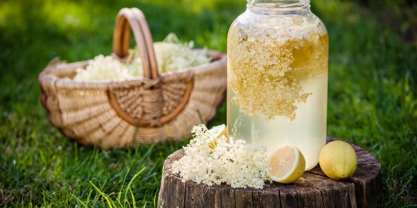 Струсніть свіжозібрані головки бузини, потім огляньте та видаліть комах. Покладіть квіти бузини у велику миску, додайте лимонний сік і змішайте з подрібненою цедрою, цукром і оцтом. Акуратно влийте 3 літри теплої води і перемішайте, щоб цукор розчинився. Поставте в темне прохолодне місце, нещільно накривши, на 24 години для настоювання.