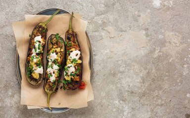 Тут я перетворюю скромні баклажани на яскравий салат із начинкою у стилі песто, яка насичена солодкими, кислими та солоними смаками. Щобільше, духовка виконує всю важку роботу за вас — лише за п’ять хвилин любові та турботи ви можете приготувати щось, сповнене життям і кольором.