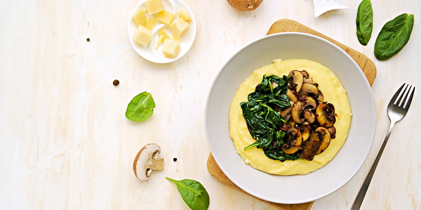 Полента зі шпинатом і грибами — смачний вегетаріанський гарнір
