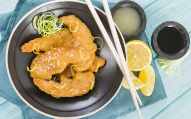 Ця лимонна курка подається з великою кількістю лимонного соусу з додаванням солодкого присмаку. Але найкраща частина цієї страви з курки — це супер хрустка скоринка, яка вразить вас в найкращому сенсі.