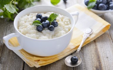 Вибирайте для пудингу простий круглий рис та прикрашайте страву свіжими ягодами на власний смак.