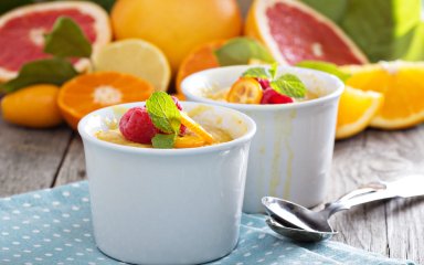 Подавайте цитрусово-ванільну кашу зі свіжими ягодами та рідким медом або з абрикосовим варенням.