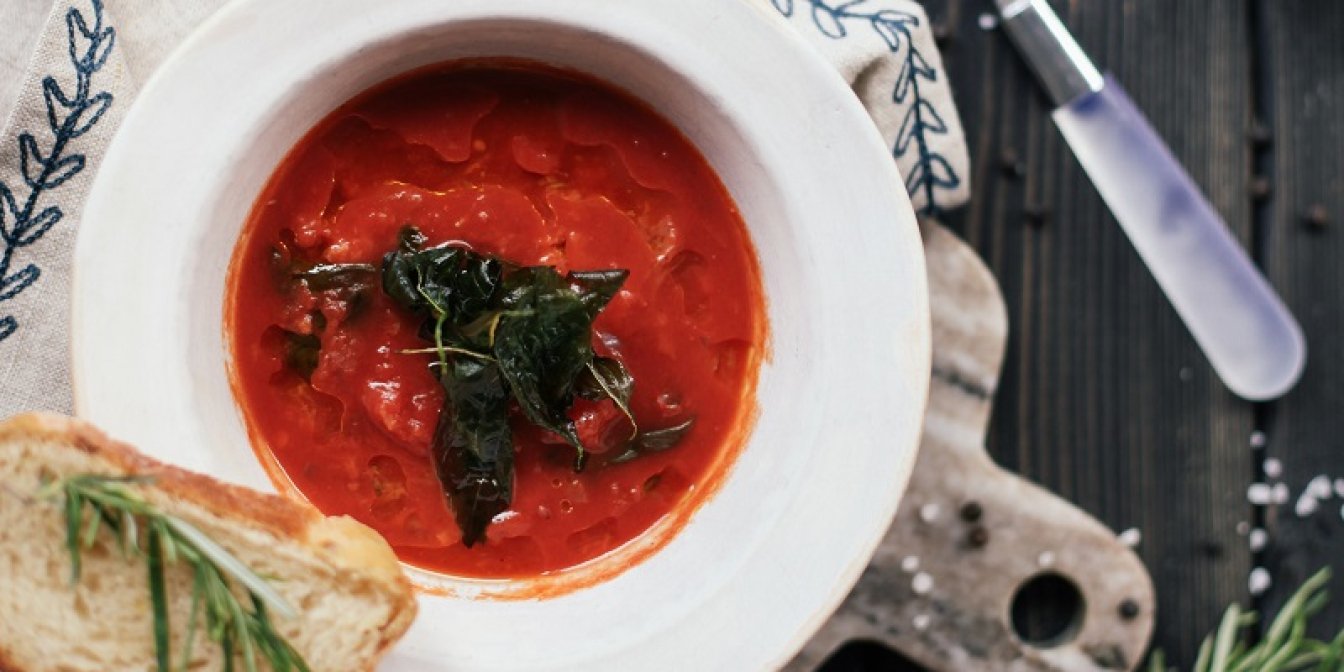 Тим часом перебиваємо блендером помідори до однорідної маси.