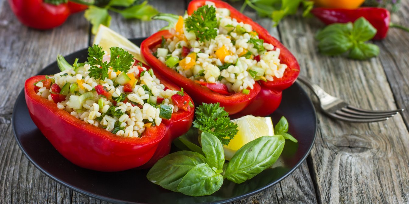 Фаршировані перці: рис, духмяні трави й тофу