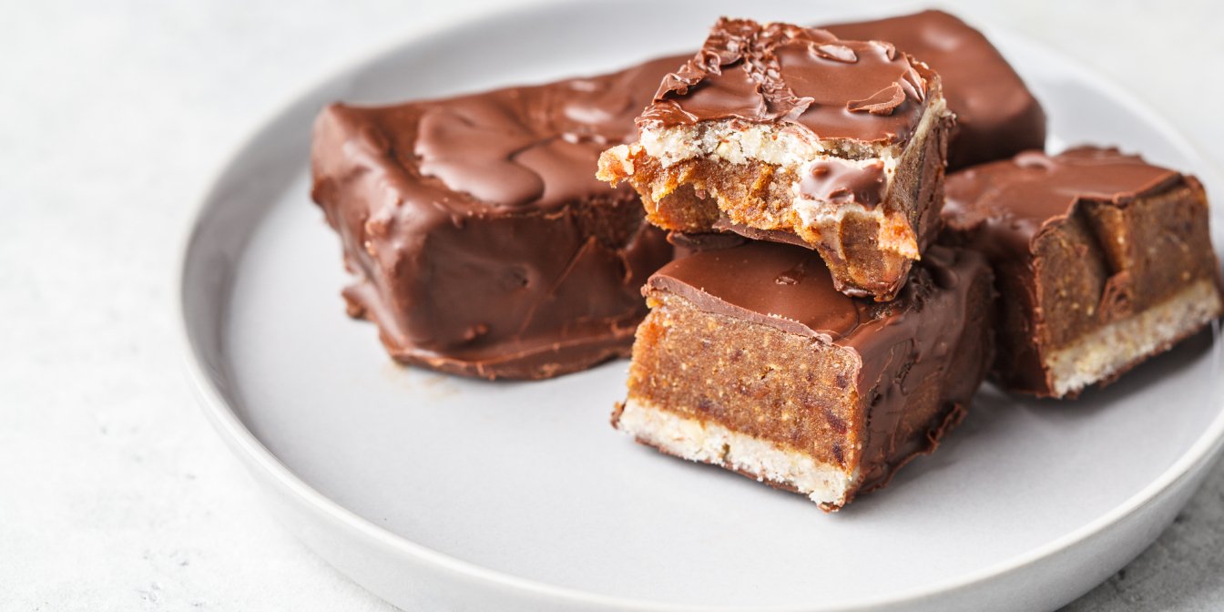 Після вистигання зламайте або розріжте батончики наміченими лініями. Розтопіть шоколадну глазур у мисці, придатній для використання в мікрохвильовій печі, часто помішуючи, поки вона не розтане і не стане однорідною.