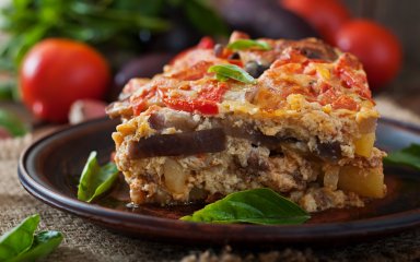 Мусака — це запіканка, що складається з шарів обсмажених баклажанів, м’ясного фаршу, помідорів і цибулі. Страва вкрита вершковим сирним соусом бешамель і приправлена часником, корицею та запашним перцем. Варіанти класичного рецепта включають додавання картоплі, кабачків чи грибів.