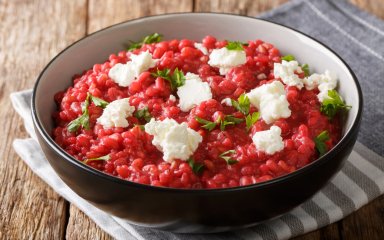 Ризото — класика італійської кухні. Пропонуємо додати до нього трохи українського колориту за допомогою відвареного буряка. Готувати ризото з буряком просто. Рис поєднається з бульйоном, який треба випарити, постійно помішуючи.
