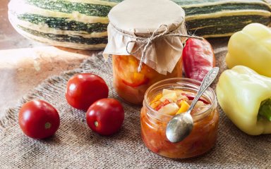 Цукіні та помідори — чудова команда у цій смачній домашній закусці на зиму. Звісно, можна додати й болгарського перцю. Заготовка буде яскравою й ароматною, а головне — це швидкий спосіб отримати взимку вітамінний салат з улюблених овочів. Найкраще така закуска пасує до вареної або смаженої картоплі.