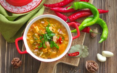 Мексиканський суп з ніжними шматочками курки, овочами, перцем чилі та картоплею в пікантному томатному бульйоні — чудовий спосіб небанально втамувати голод.