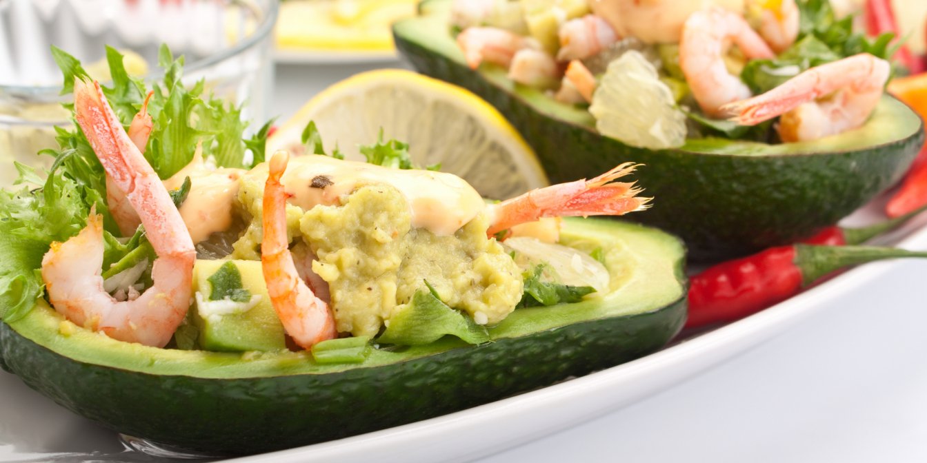 Фаршироване авокадо з креветками