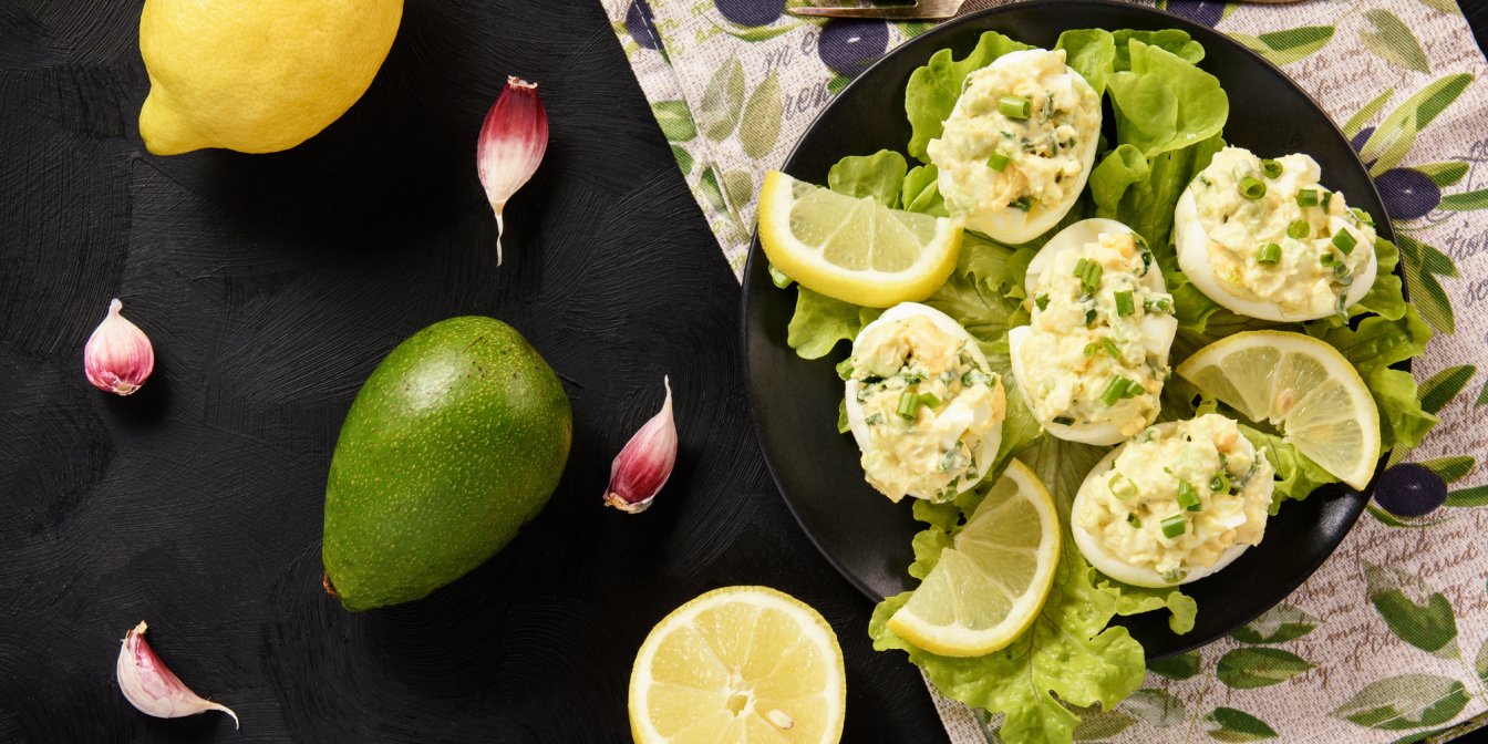 Яйця з авокадо — це не тільки перевірена комбінація, а й корисна. Завдяки кремовій текстурі авокадо нам не знадобиться майонез, який часто використовують при фаршируванні яєць. Тільки трошечки сметани для приємної вершковості.