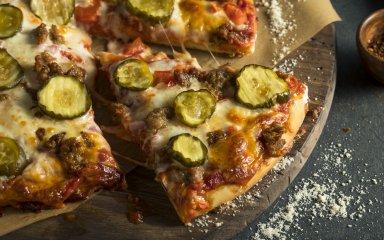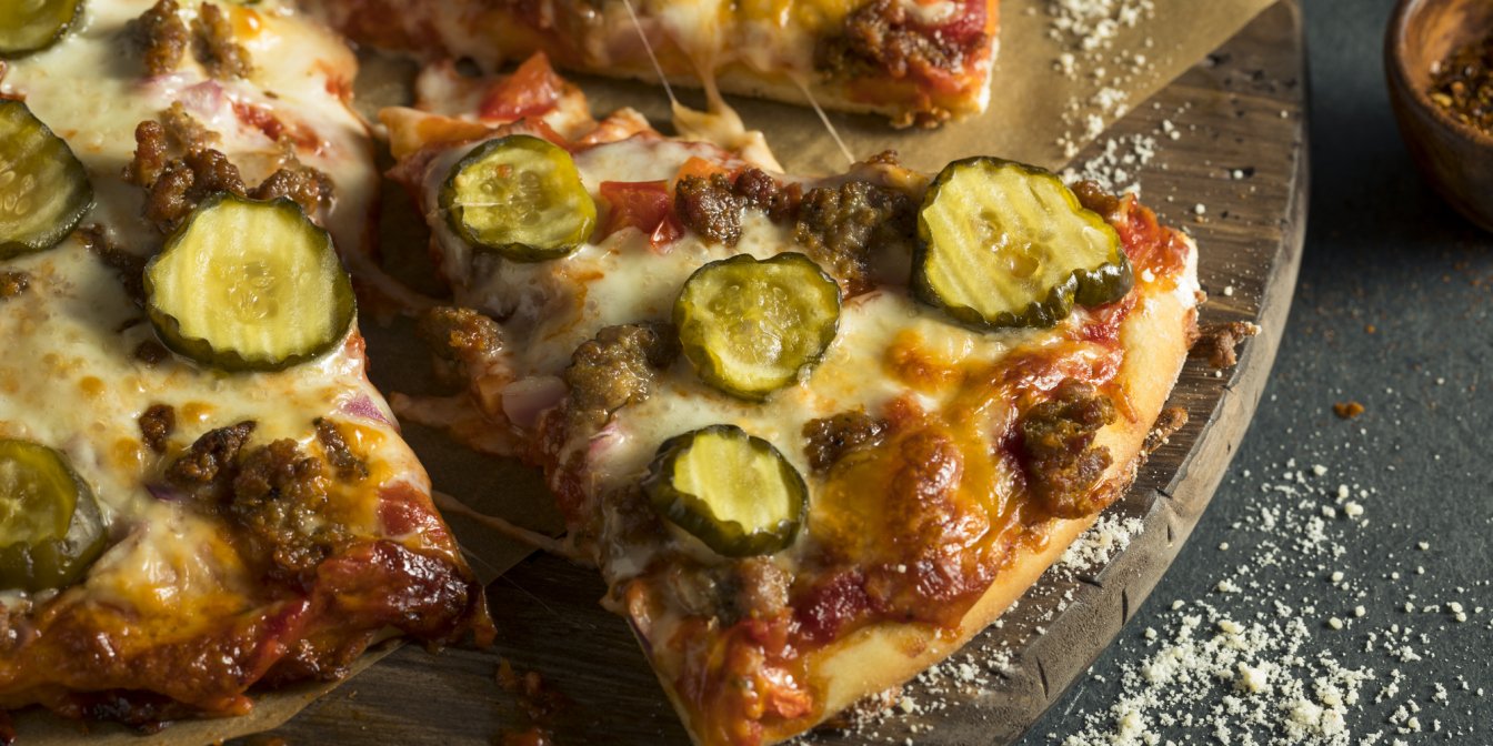 За цим рецептом, який є американською класикою, вам знадобиться готове тісто для піци, кетчуп і гірчиця, яловичий фарш, мариновані огірки і сир чедер. За годину ваша сім’я вже боротиметься за останній шматочок піци-чизбургера.