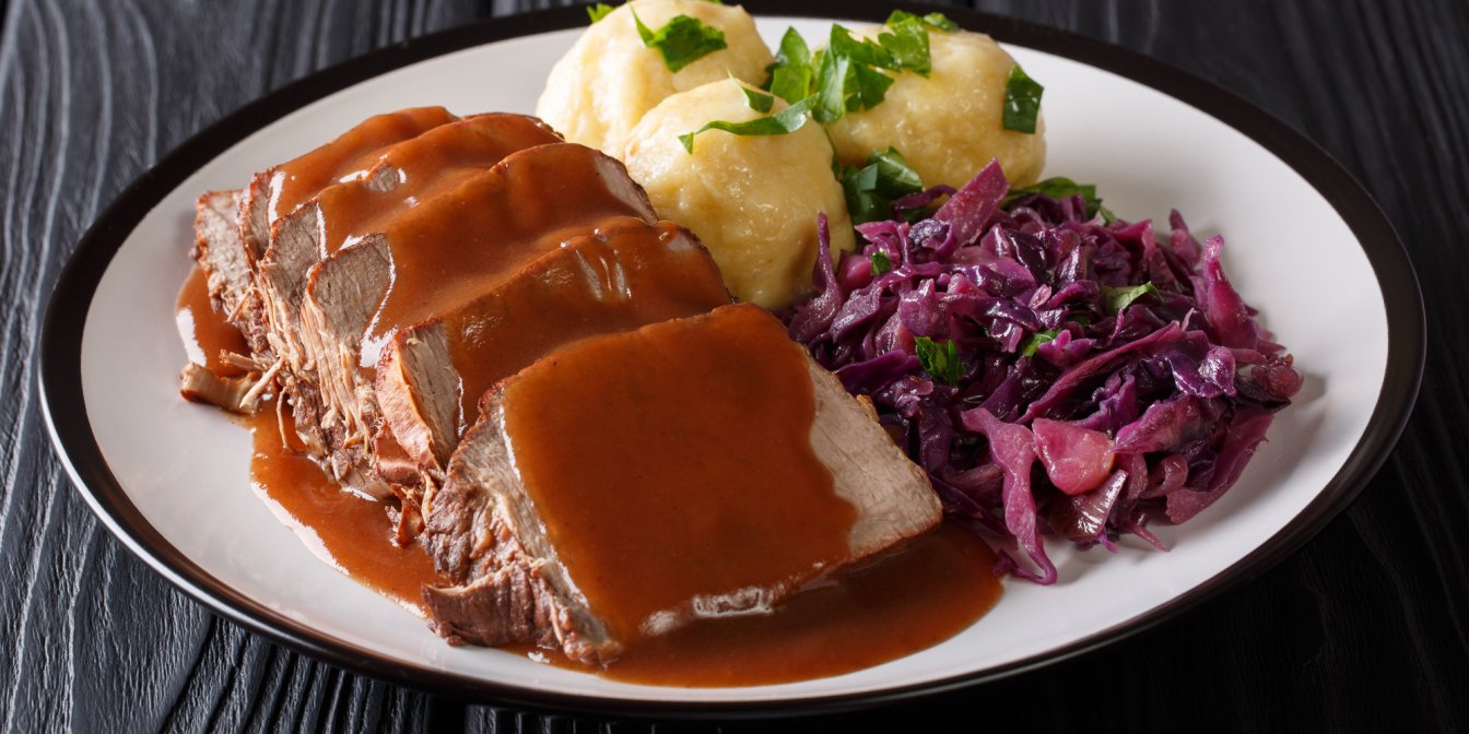 Зауербратен — страва не з простих і не із швидких. Це печеня з яловичини, яка попередньо маринується цілих 2 дні! Проте результат того точно вартий.