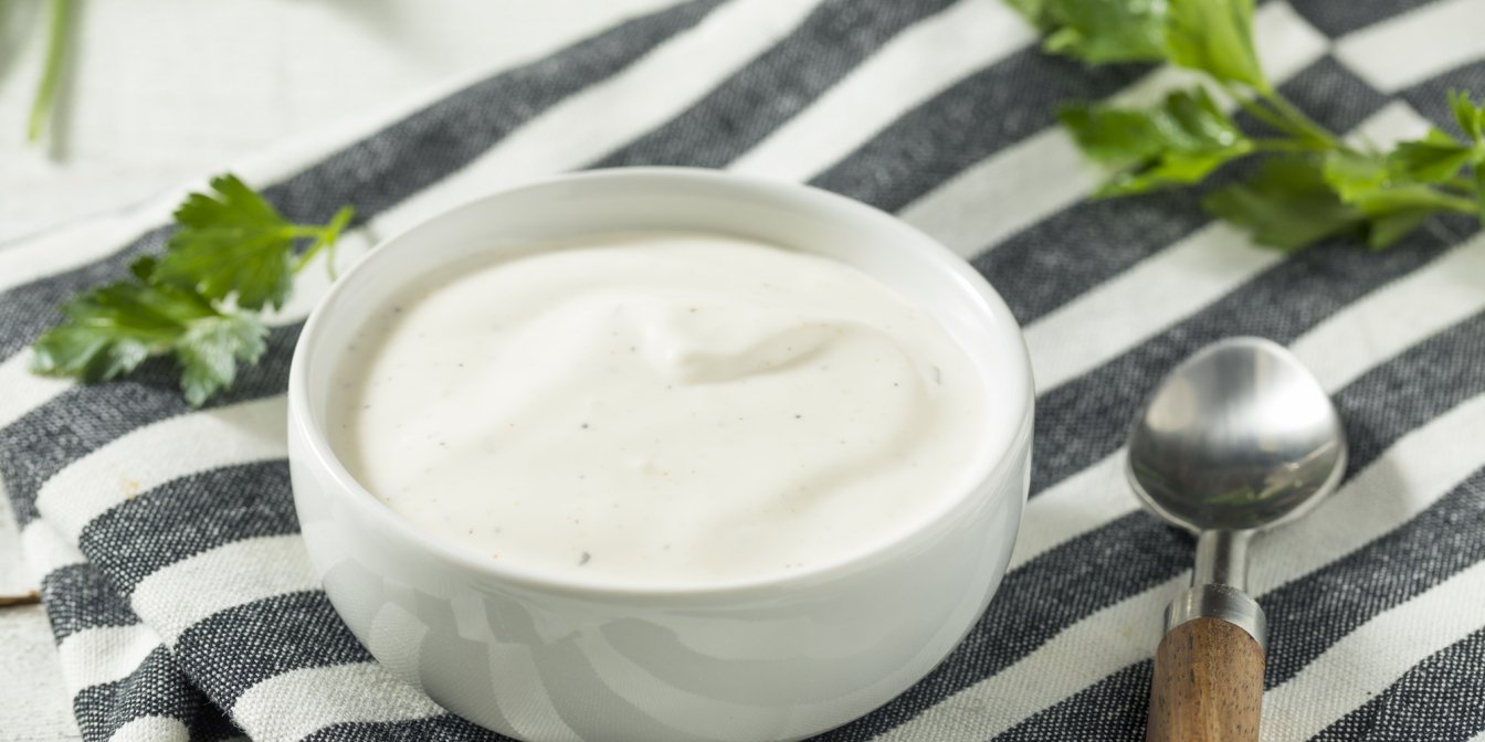 Соус ранч дуже популярний серед американців. Він кремовий, з приємним трав’янистим ароматом і ледь вловними нотками часнику. Як і всі відомі страви, ранч має багато варіацій. Ми пропонуємо приготувати соус зі сметани, майонезу, сушених трав і приправ. Його ви можете додавати до таких ситних страв, як салат з макаронами і тунцем або курячі нагетси.