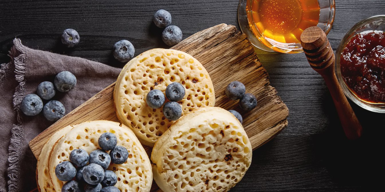 Класичні британські крампети чимось схожі на панкейки, традиційно їх подавали з післяобіднім чаєм, але вони швидко перетворювалися на швидкий і легкий сніданок. Їх пухкенька текстура залишає далеко позаду навіть улюблені нами оладки.