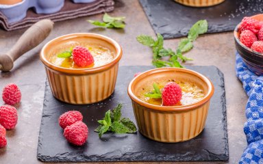 Цей простий пудинг являє собою запечений у духовці ванільний заварний крем. Подавайте його з малиною для контрасту солодкого та кислого смаків.
