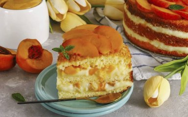 Під час приготування фрукти вивільняють свій аромат і пускають сік, що робить торт з персиками вологим, смачним і запашним. Одним словом — божественним! А додайте ще пухкі коржі і шовковистий заварний крем, і у вас складеться формула ідеального десерту для літа.