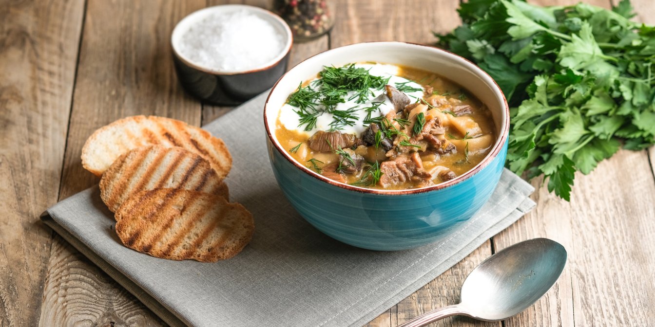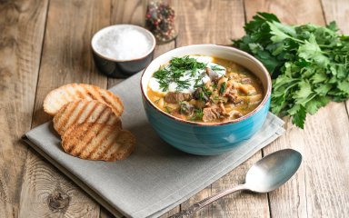 Солянка досить ситна, щоб нею можна було насолоджуватися просто так, але її також добре подавати з хлібом на заквасці.