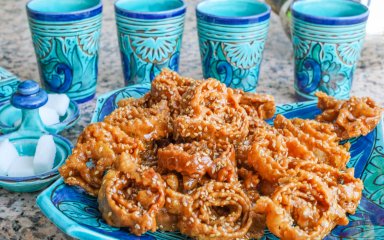 Мед, кунжут, кориця, шафран, аніс та апельсинова вода — незамінні прянощі у цьому десерті, які надають чудового липко-солодкого та пряного смаку. Кунжутне печиво, обсмажене у фритюрі сподобається ласунам.