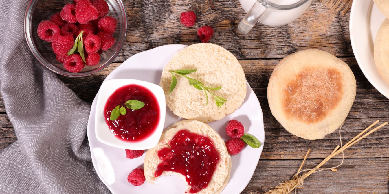 Англійський мафін з арахісовим маслом і ягідним джемом