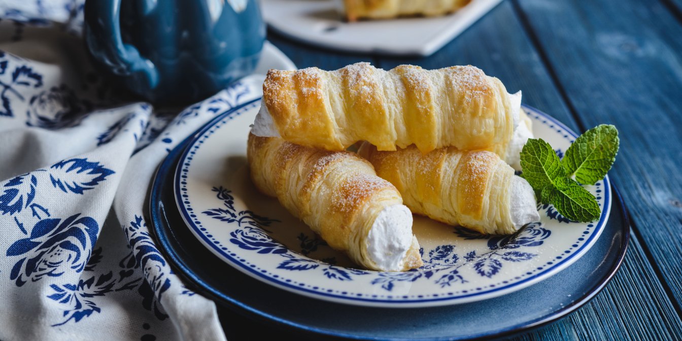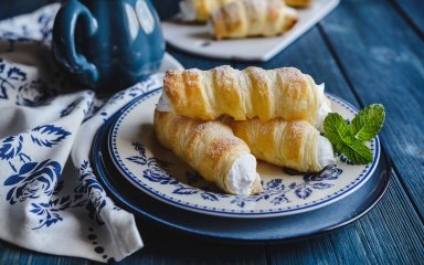 Трубочки з заварним кремом і персиками — найсмачніший десерт, який можна приготувати досить швидко. Головне — не забути купити листкове тісто.