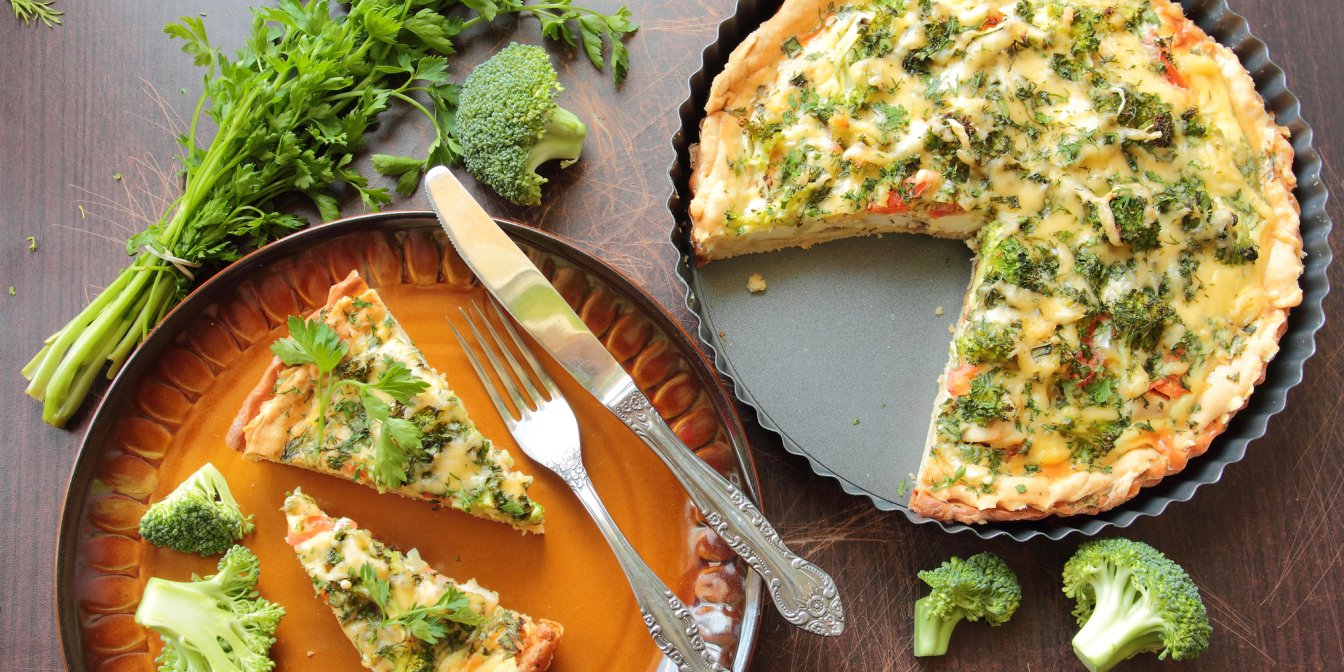 Пікантний пиріг з кисломолочним сиром і броколі підкорить вас своїм ніжним смаком та м’якою текстурою. Його чудово подавати теплим для швидкого обіду з гарним сезонним салатом або холодним як закуску.