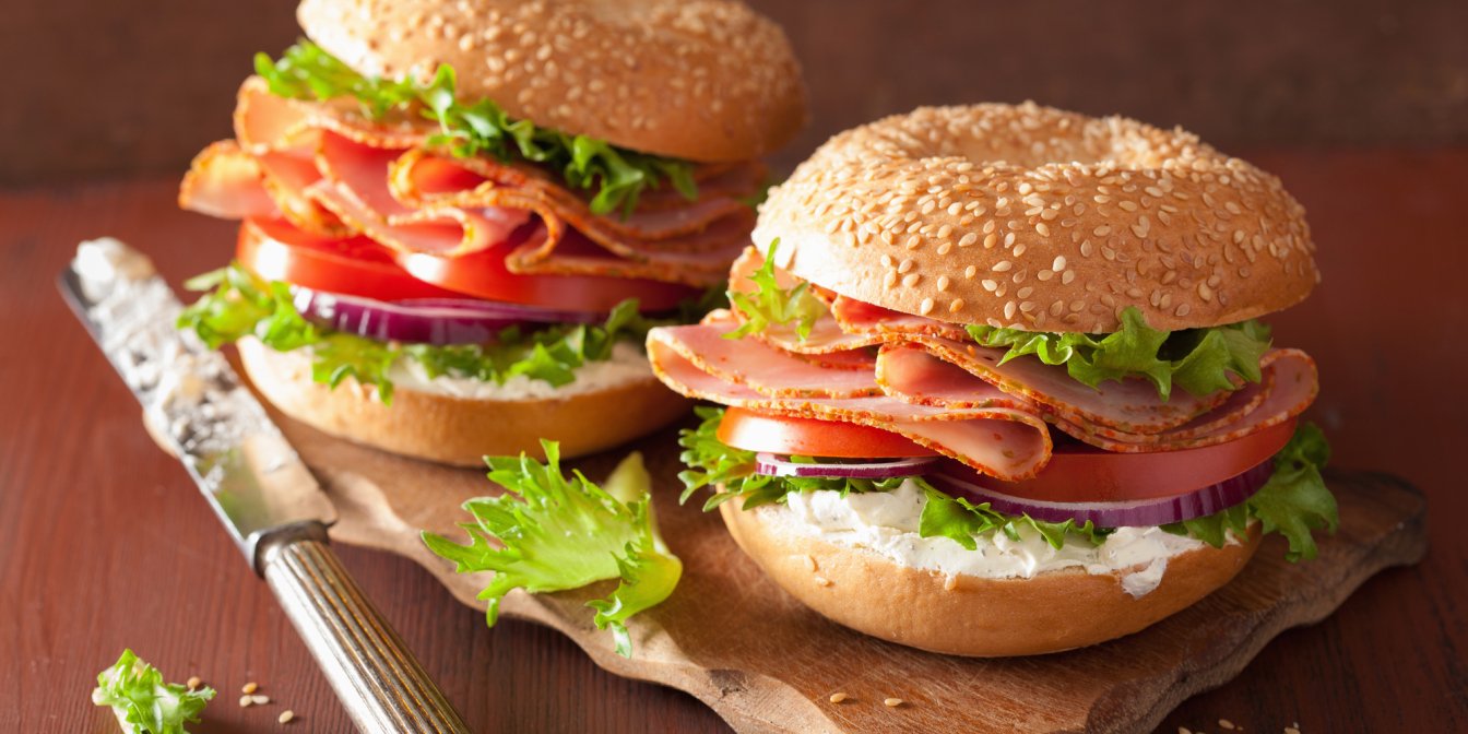 Для любителів сендвічів і бутербродів маємо ще один різновид улюбленого перекусу — бейгли! Це така булочка у формі кільця, в яку можна додати будь-яку начинку, як-от, наприклад хумус, шинку і сир.