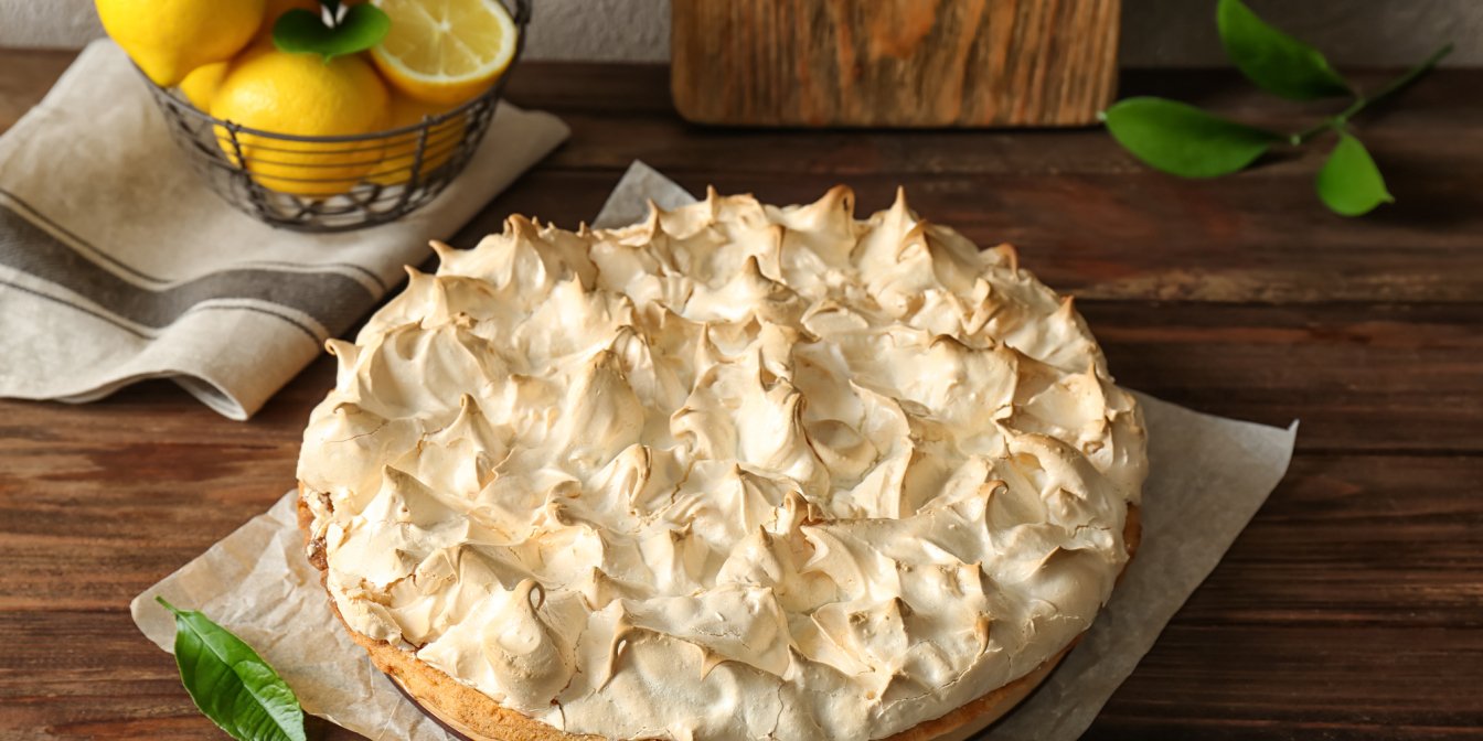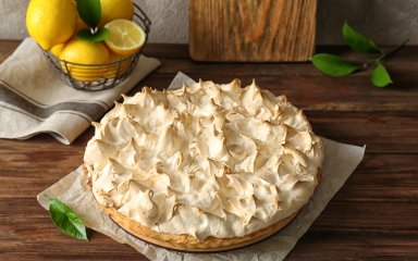 Білки збийте із цукровою пудрою і лимонним соком до пишної піни. Викладіть її поверх начинки. Випікайте в духовці, розігрітій до 180 °C, 10 хвилин до золотистості.