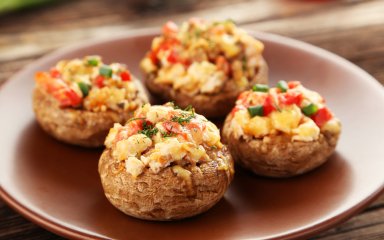 Грибні капелюшки з овочами — відмінна ідея для закуски або гарніру. Капелюшки печериць, фаршировані нарізаними кубиками овочами та сиром, запікають у духовці та подають до столу. Страва проста у приготуванні, а результат дуже приємний!