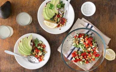 Ви можете насолоджуватися цим салатом з кіноа і нутом окремо, або як гарніром до курятини з горіхами пекан або риби з лимонним маслом. Цей салат також чудово брати з собою на роботу на обід. Також він чудово підійде для пікніків — просто тримайте олію окремо в баночці та гарненько струсіть салат, перш ніж додавати.