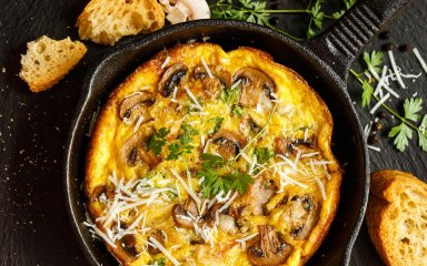 У кожній італійській сім’ї є свій рецепт приготування страви: з пармезаном і чері, цибулею та спеціями, шпинатом і лососем тощо. А ми, щоб зробити фритату ще апетитнішою, додали кілька скибочок картоплі, цибулю та печериці, які збагатять смак страви.