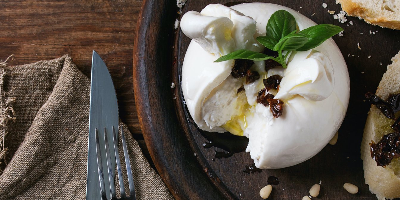 - Бурату перед подачею прямо в коробочці треба потримати в теплій воді 10 хвилин. Так вона стане більш м’якою і на повну розкриє свій вершковий смак.