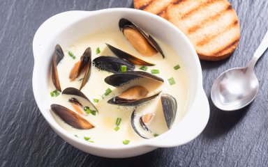 Спогади про море: суп з мідіями, помідорами та шафраном