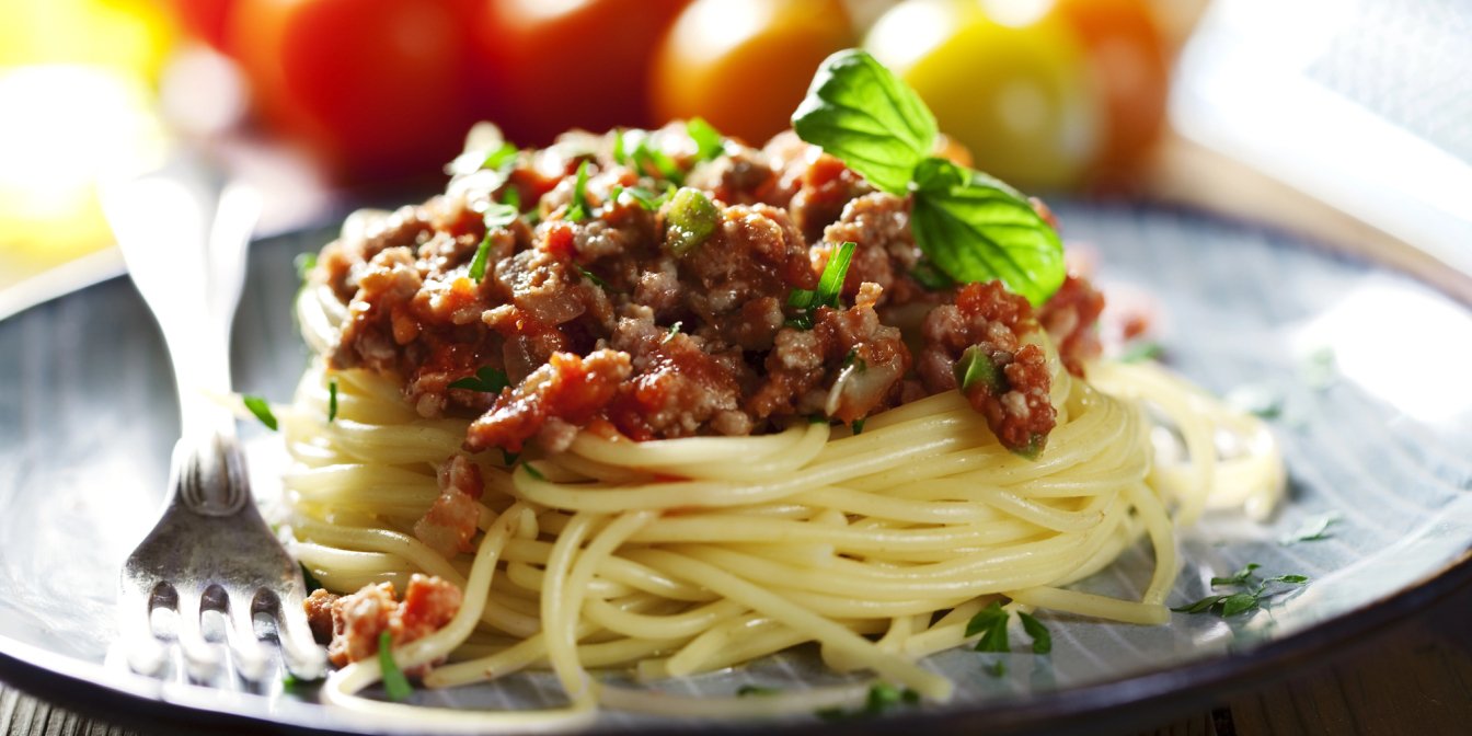 Соус болоньєзе походить з італійського міста Болонья. Його традиційно подають на пасті тальятеле, пласкій довгій локшині, але в інших країнах готують зі спагеті. Щоби приготувати класичний болоньєзе, нам потрібен яловичий фарш і трохи червоного вина.