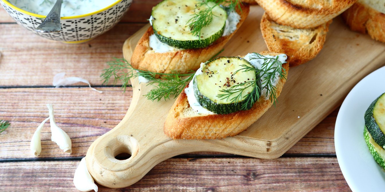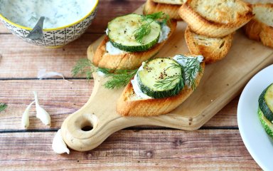 Якщо у вас мало часу і ви не хочете розчаровувати друзів, що застали вас зненацька, брускети з цукіні та м’яким сиром — те, що треба! На їхнє приготування піде всього-на-всього пів години.