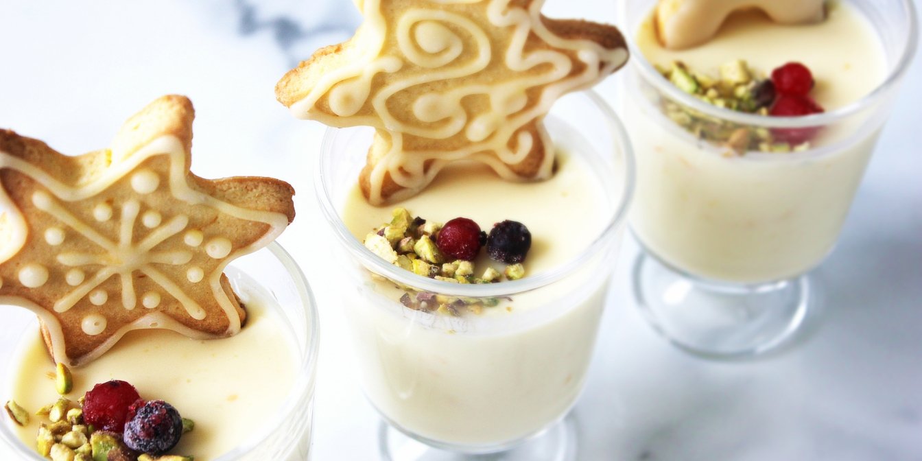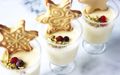 Настав час відкласти гарбузовий лате зі спеціями, щоб звільнити місце для цього ніжного десерту з вершків, молока, какао, ванілі і желатину. Їх треба об’єднати, збити віничком, приготувати на водяній бані та охолодити. Всього чотири кроки, і ви зануритеся у насичений аромат пряників.