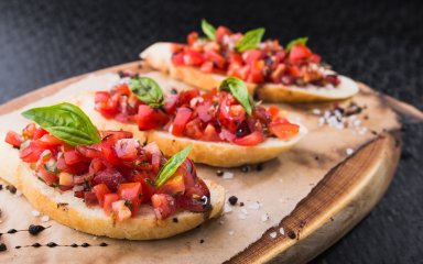 Любите італійську кухню? Тоді вам неодмінно треба приготувати брускети з помідорами і базиліком! Як виглядаяє ця страва? Це нарізані свіжі томати з часником, базиліком, оливковою олією та оцтом, подані на підсмажених скибочках французького багета або італійської чіабати. Подавайте брускети як закуску та чекайте на компліменти!