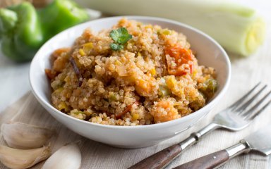 Легка і збалансована, кіноа з креветками має свіжу нотку помідорів чері та петрушки, але ви можете додавати й інші інгредієнти, наприклад, кабачки, авокадо або інші овочі.