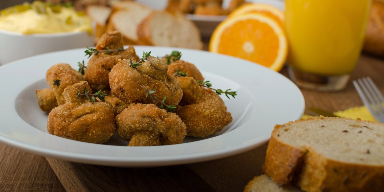 Натхненний класичними курячими нагетсами, цей рецепт печериць у клярі є таким самим універсальним, простим і смачним, але також доступним для вегетаріанців. Секрет смаку в клярі: його зробимо з кукурудзяного крохмалю, сушеного часнику та паприки.