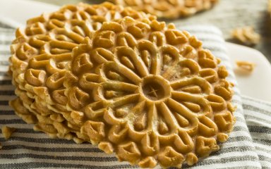 Раніше піцелі готували на свята — Різдво або Великдень, але зараз ці смаколики є в італійських магазинах цілий рік. Їх їдять самостійно, загортають в них начинку, або ж використовують дві вафельки, склеюючи їх різноманітними топінгами. Саме цей варіант ми пропонуємо вам приготувати.