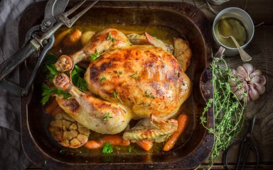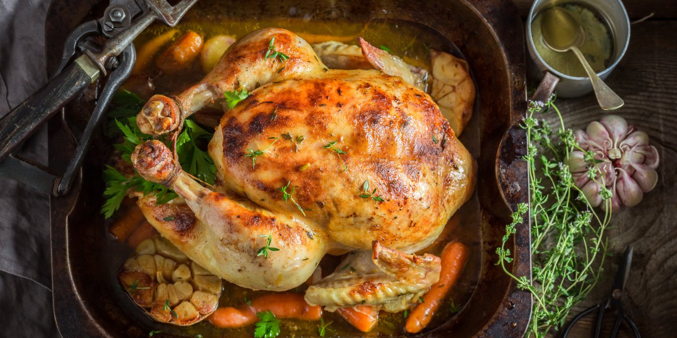 Ціла запечена курка — це чудовий варіант основної страви для обіду у великому сімейному колі. Соковите мʼясо дуже просто готується і не потребує значних зусиль — за це ми й любимо курку.